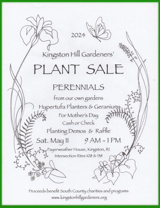 KHG participates in the Kingston Village Fair with a plant sale in May. Fundraisers are held every other year for the purpose of providing the South County Community with an inspiring gardening presentation.